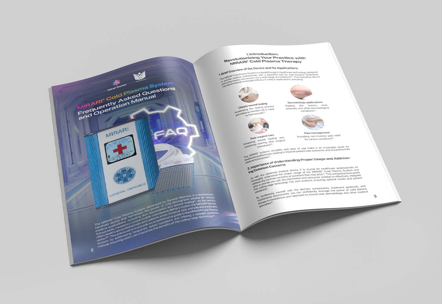 Cuốn sổ “Hệ thống Plasma Lạnh MIRARI – Câu hỏi thường gặp và Hướng dẫn Vận hành,” cung cấp câu trả lời toàn diện cho các câu hỏi phổ biến về Hệ thống Plasma Lạnh MIRARI và đưa ra hướng dẫn vận hành chi tiết cho các chuyên gia y tế. Nó giải thích cách hệ thống hoạt động, các tính năng chính, và cách khắc phục các vấn đề thường gặp, đảm bảo rằng các chuyên gia y tế có thể sử dụng hiệu quả hệ thống để cải thiện kết quả điều trị cho bệnh nhân.